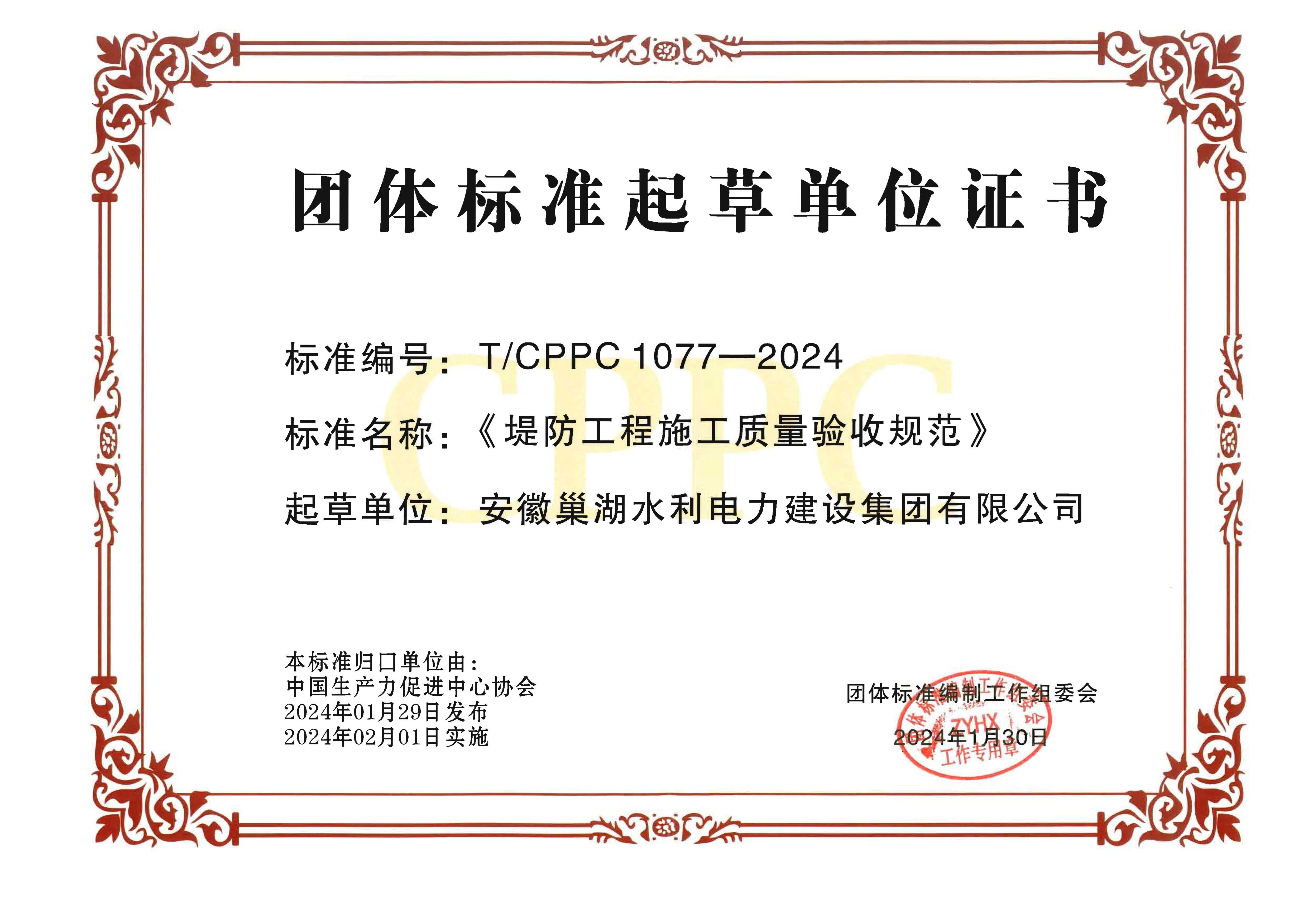 2024年度團(tuán)體標(biāo)準(zhǔn)起草單位證書(shū)
