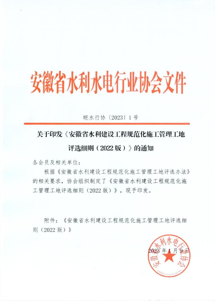 轉(zhuǎn)發(fā)關(guān)于印發(fā)《安徽省水利建設(shè)工程規(guī)范化施工管理工地評(píng)選細(xì)則(2022版)》的通知