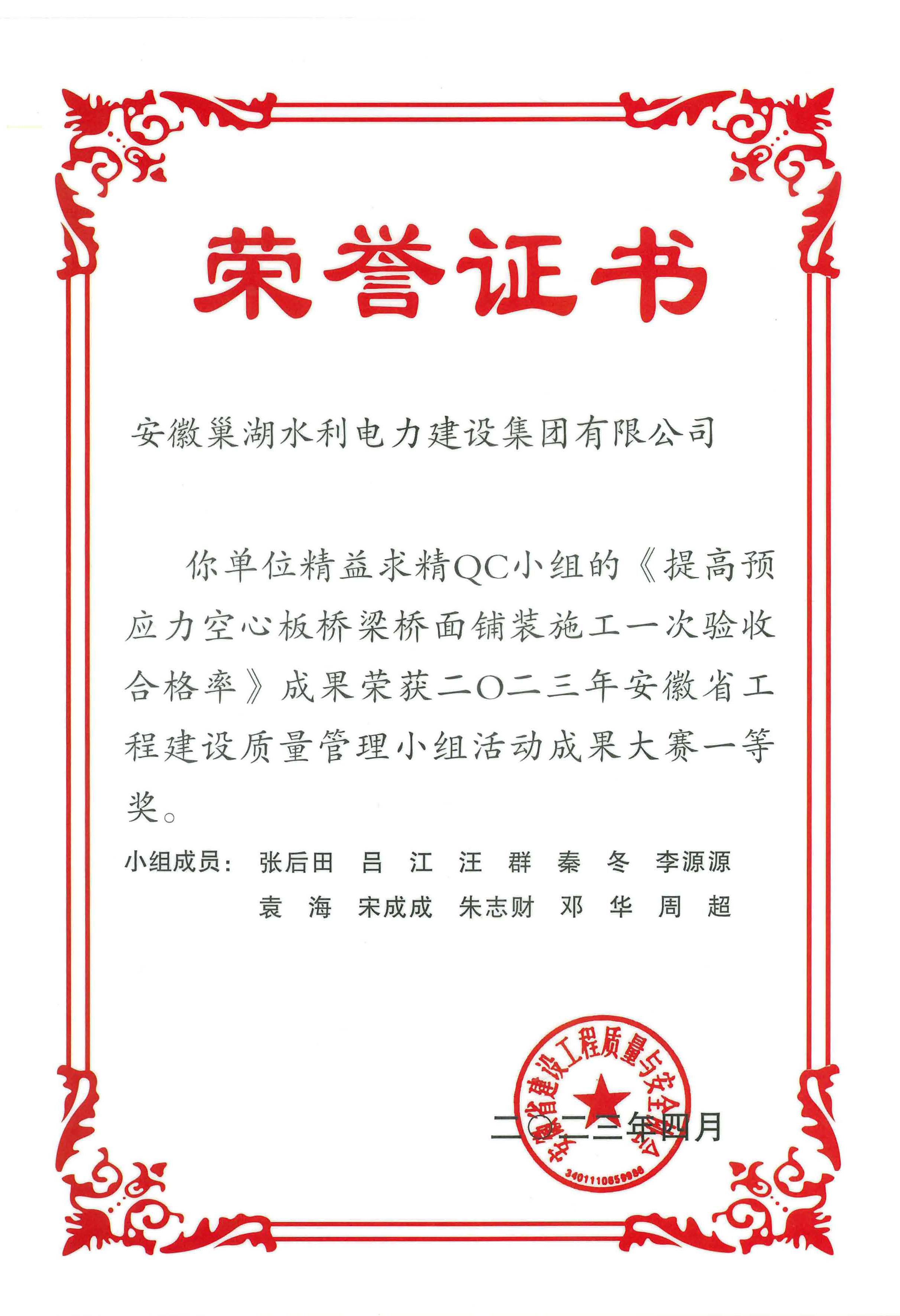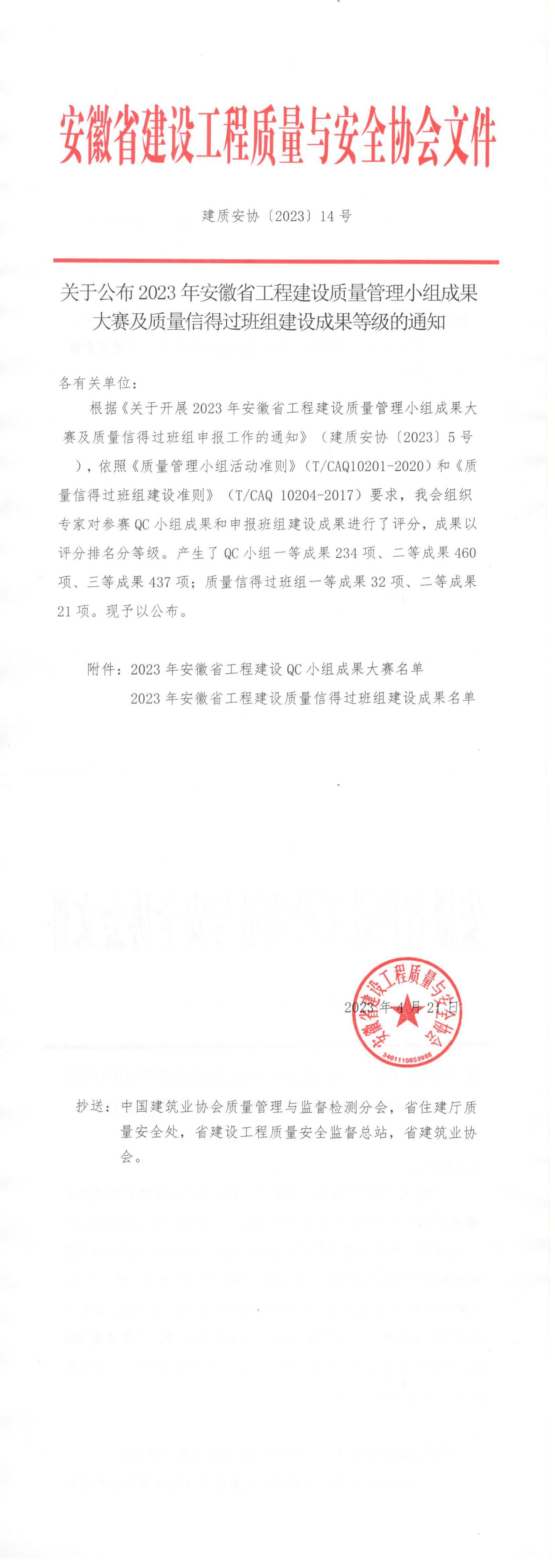 附件:2023安徽省工程建設QC小組成果大賽名單