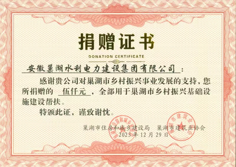 贈人玫瑰,手有余香。安徽巢湖水利電力建設集團有限公司響應巢湖市政府及建設主管部門關于鄉村振興建設幫扶活動,促進美好鄉村建設,彰顯忠誠擔當,積極參與巢湖建筑業協會開展的鄉村振興幫扶捐贈活動,在2023年10月23日捐款5000元用于銀屏鎮岱山村路燈維修、破損道路維修、脫貧戶破損門窗維修。安徽巢湖水利電力建設集團有限公司以實際行動助力鄉村振興,積極參與到鄉村振興過程中來,充分彰顯了企業的責任和擔當。