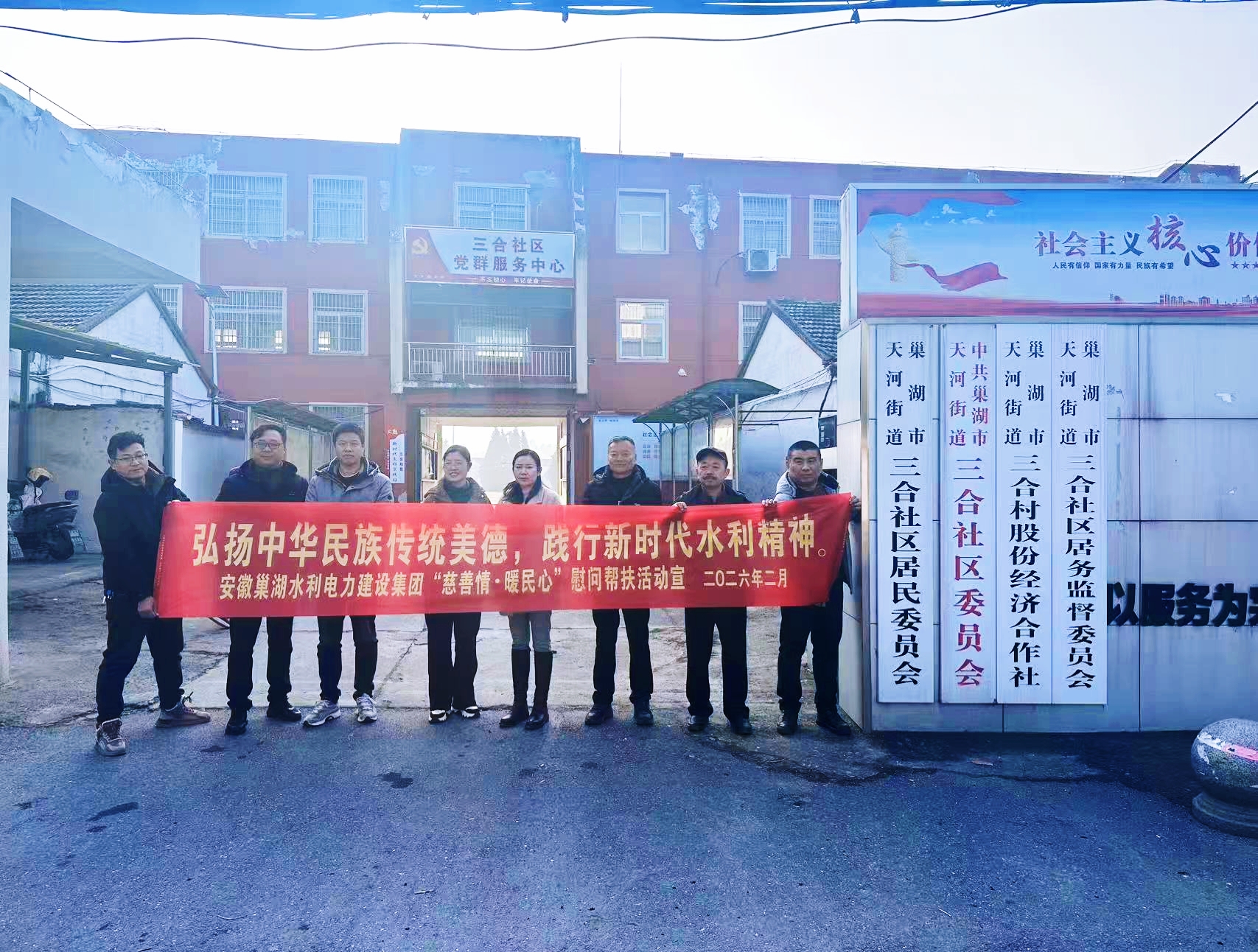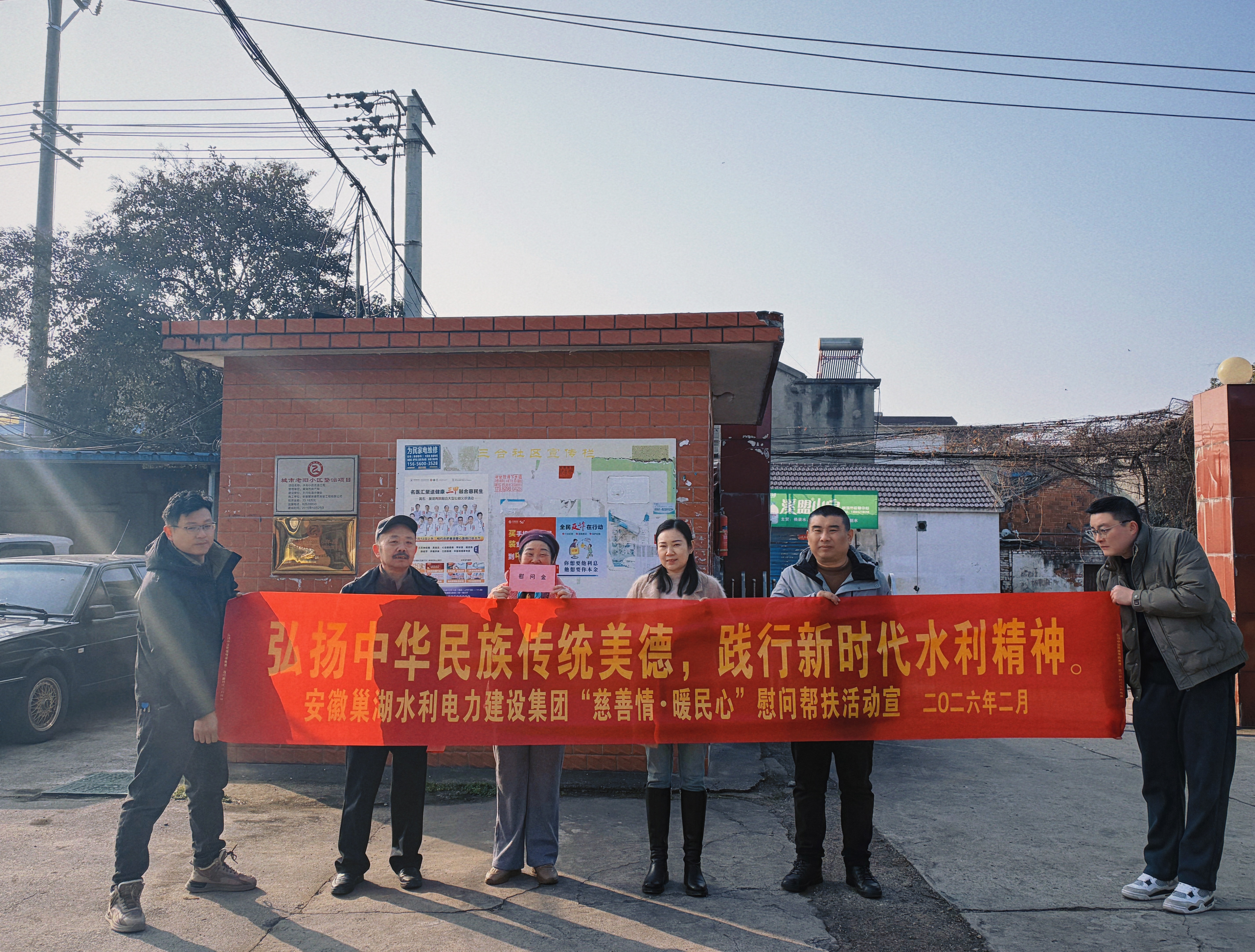 新春將至,暖意先行。2026 年 2 月,安徽巢湖水利電力建設集團有限公司黨員同志們以黨建為引領,攜手三合社區共同開展 “弘揚中華民族傳統美德,踐行新時代水利精神” 專項慰問幫扶活動,用實際行動詮釋黨員擔當與組織溫情。